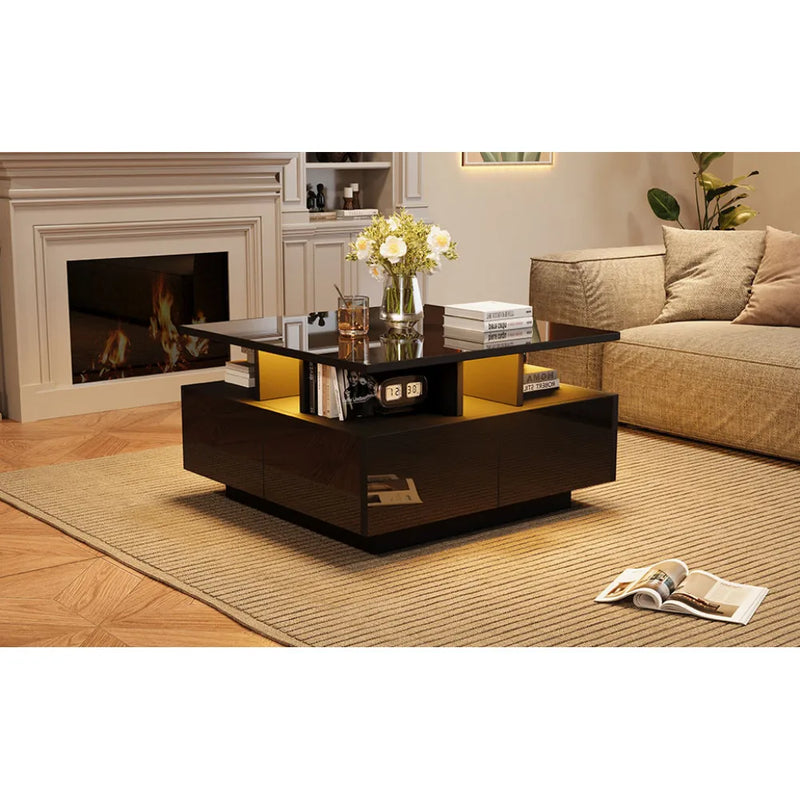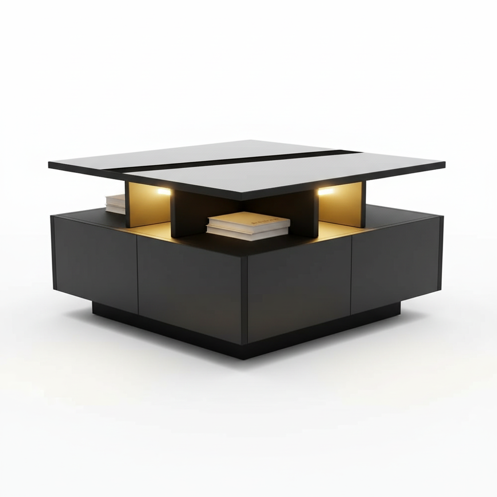 Seule table basse avec LED intégrée et finition haute brillance durable.